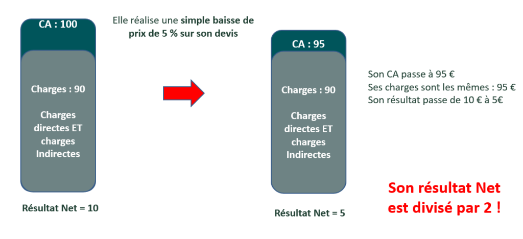 Résultat : Pour une baisse de prix de seulement 5 %, votre résultat net est divisé par deux.